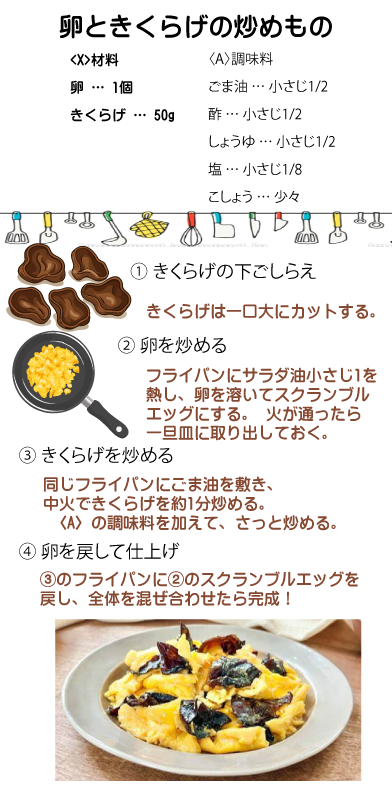 - きくらげ(乾燥):8g(戻して食べやすい大きさにカット)